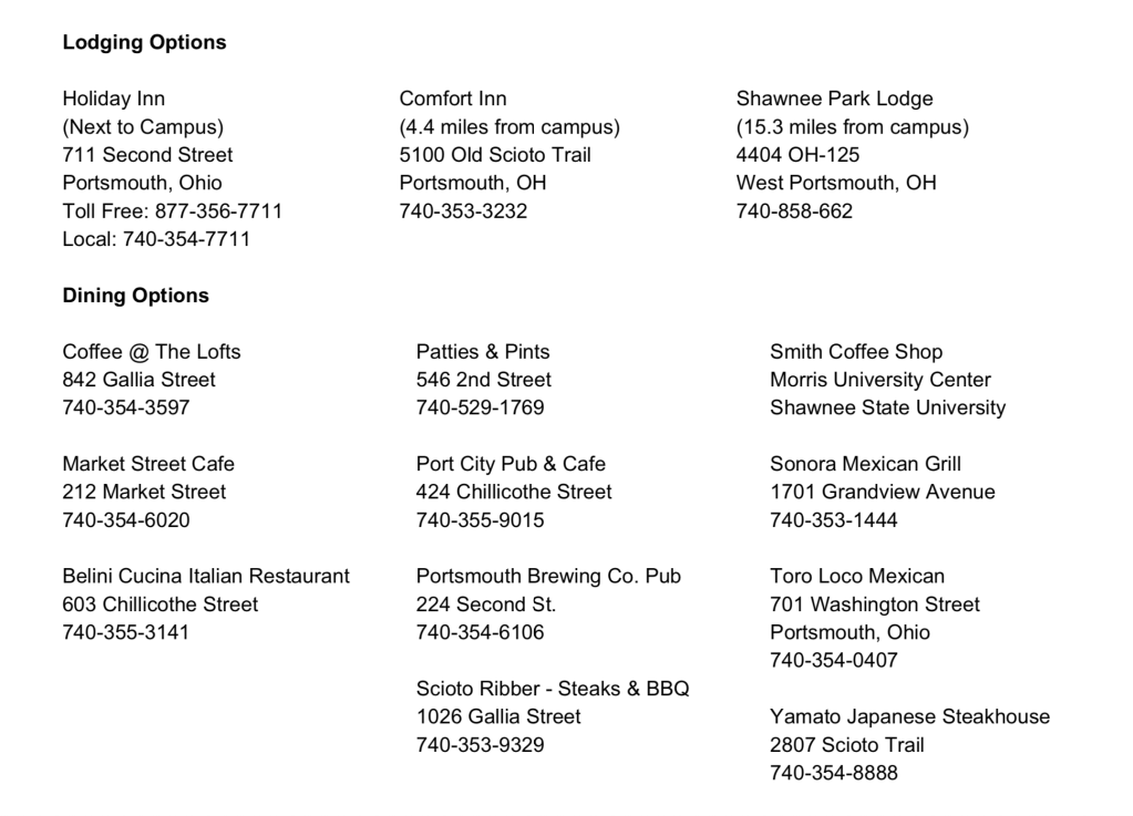 - Convener: Summer Logan, Shawnee State University
